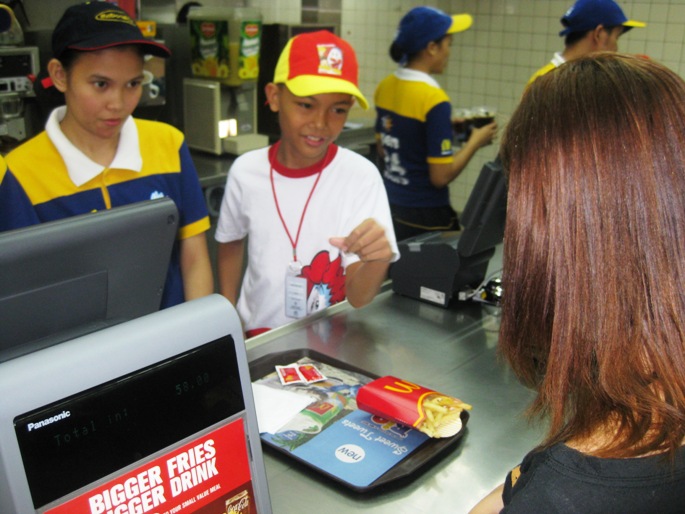 Last week, our kids Yanan (11) and Giona (7) joined the McDonald’s Kiddie Crew Workshop, a yearly event specially designed for kids to learn the values of hard work, friendship, team work, confidence and cleanliness while having fun. It was a five-day workshop and had three main activities per day — a values formation lecture that fosters a different value per day, on-floor training and art workshop.
