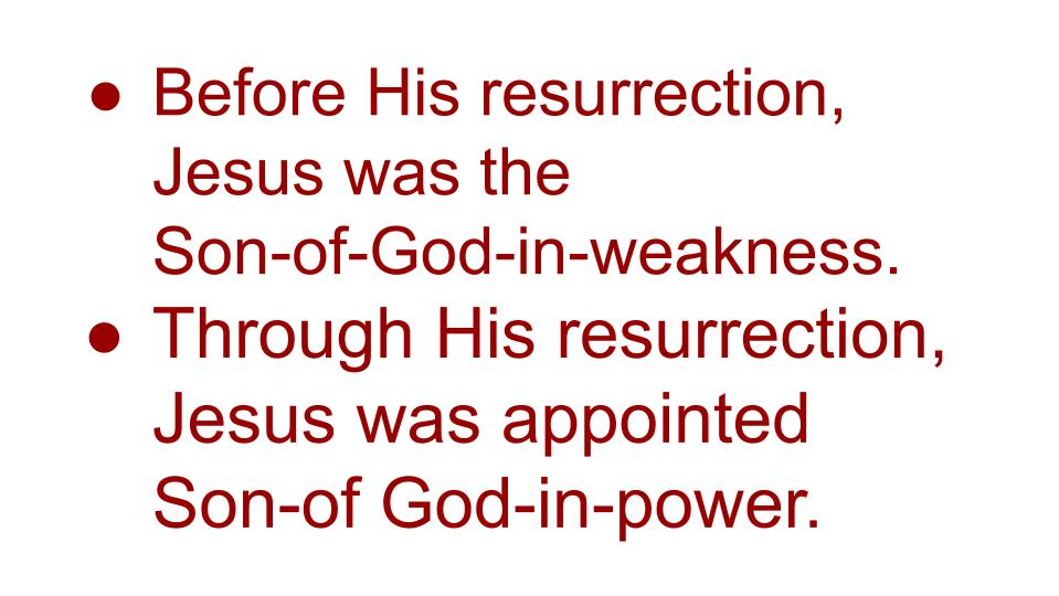 Jesus occupies a position of infinite power over all the earth and over all the universe. As Son-of-God-in-power, He saves and sets us free from the tyranny of sin (Romans 1:1–4).
