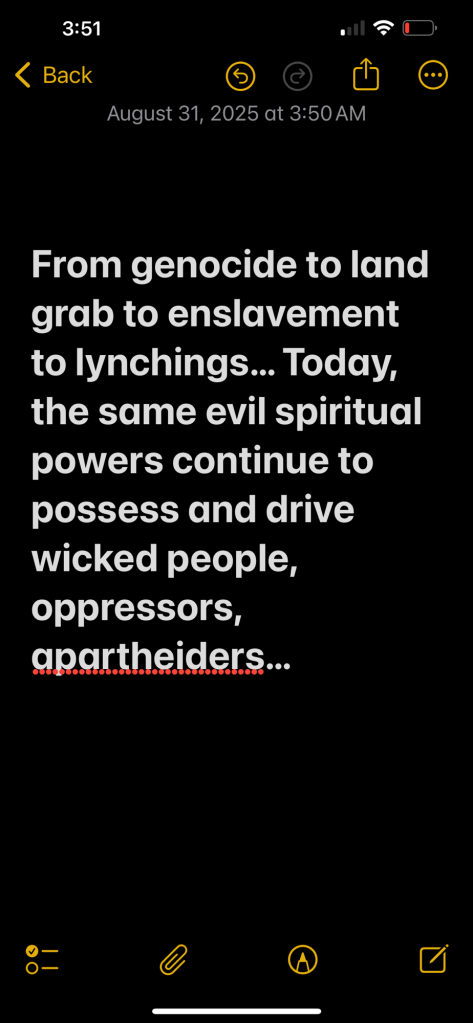 From genocide to land grab to slavery to lynchings… Today, the same evil spiritual powers continue to possess and drive wicked people, oppressors, apartheiders… What to do? #TrustAndFollowJesus