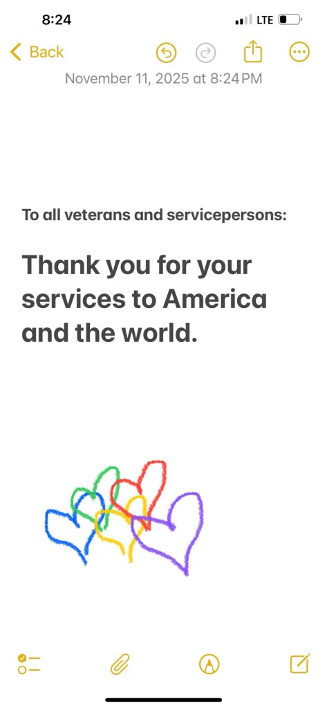November 12, 2025November 12, 2025 Salute to Soldiers 2025 Dear veterans and servicepersons,Please stay focused:(1) Nazi = enemy(2) Trump and MAGA = Nazi(3) Protect and serve the people. #LoveAmerica #OUSTTRUMP #ReconstructUSAforReal Share this: Share on Facebook (Opens in new window) Facebook Share on X (Opens in new window) X Like Loading...