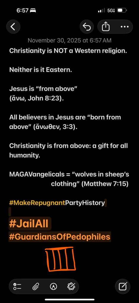 November 30, 2025 #JesusReconstructingUSA #JesusPleaseOUSTTRUMP Share this: Click to share on Facebook (Opens in new window) Facebook Click to share on X (Opens in new window) X Like Loading...