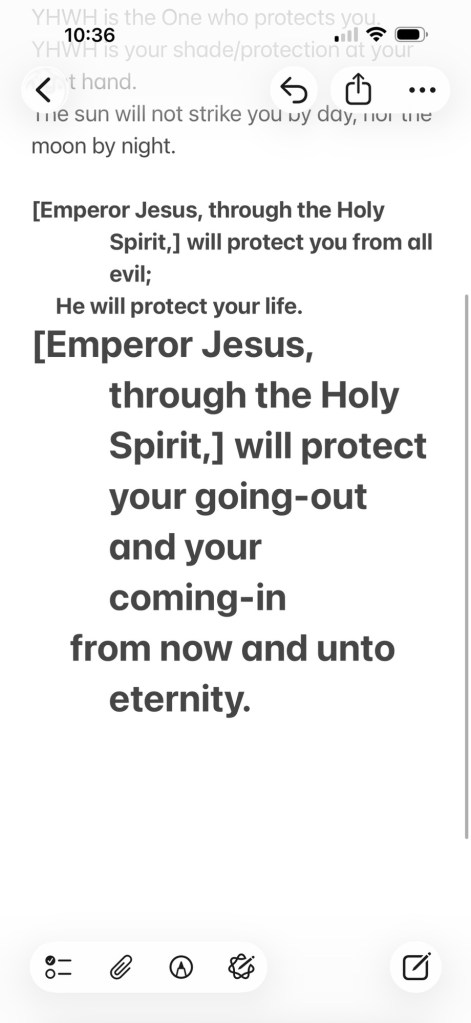 Emperor Jesus, through the Person and work of the Holy Spirit, protects you. Unceasingly. Unwaveringly. Unfailingly.