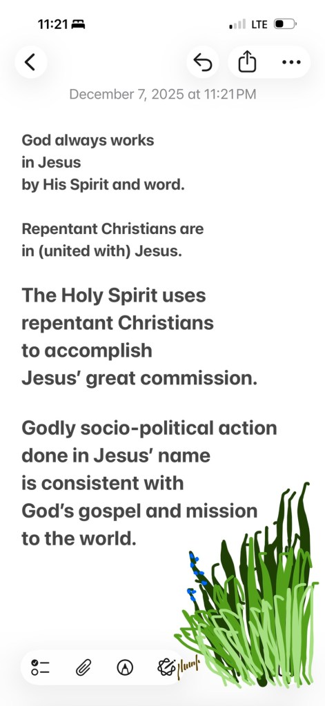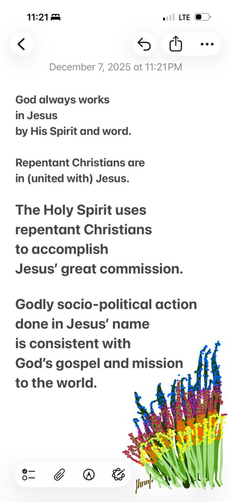 “Although reconciliation with other people is not reconciliation with God, nor is social action evangelism, nor is political liberation salvation, nevertheless we affirm that evangelism and socio-political involvement are both part of our Christian duty.” – The Lausanne Covenant